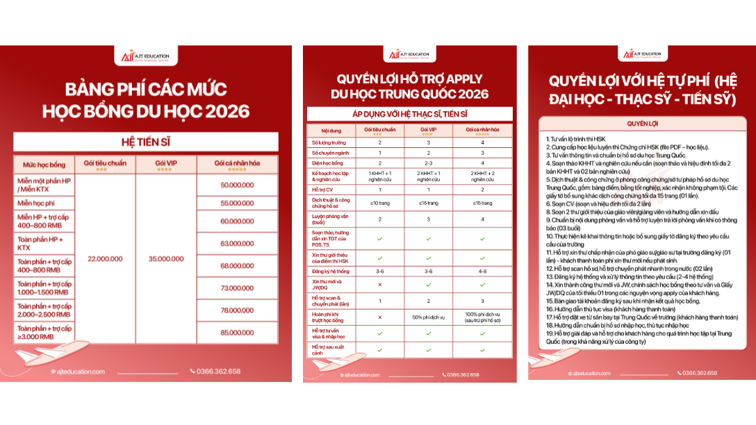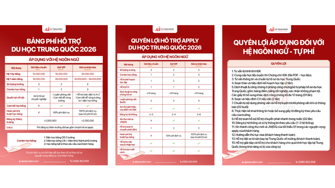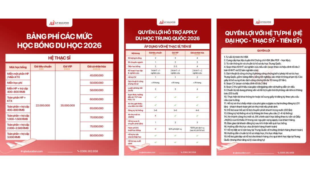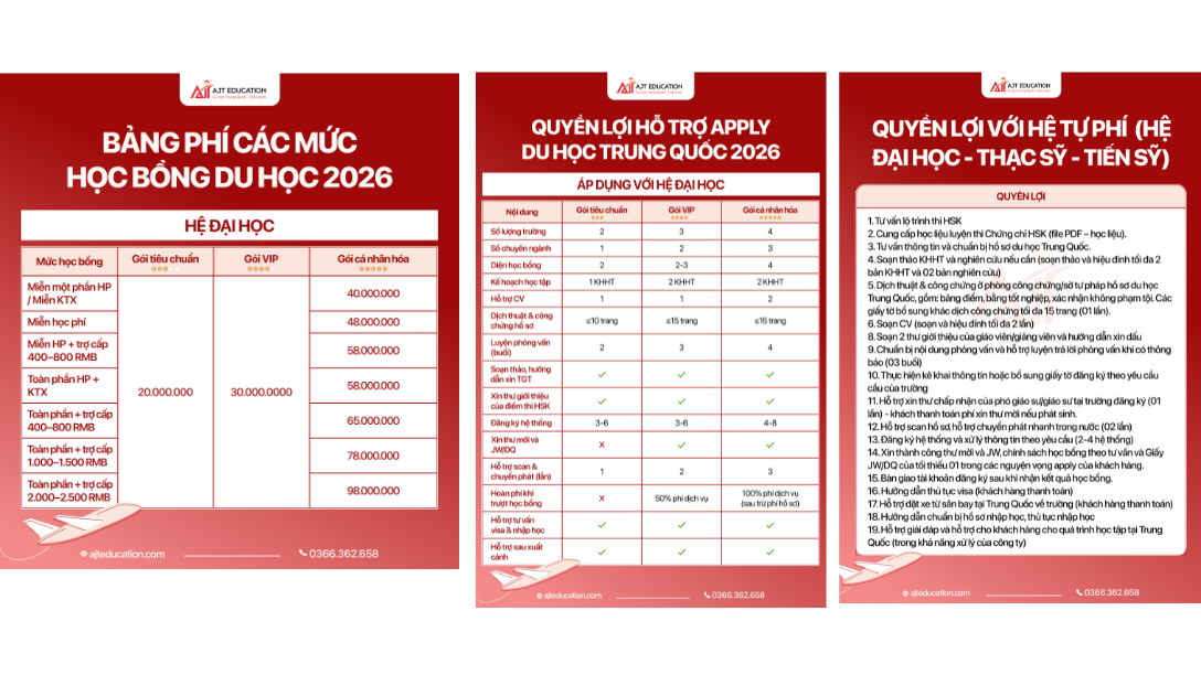 Với hơn 6 năm kinh nghiệm đồng hành cùng hàng trăm học sinh đạt học bổng toàn phần và bán phần tại Trung Quốc, AJT Education tiếp tục triển khai chương trình hỗ trợ học bổng du học 2026 với quy trình chuyên nghiệp – chi phí minh bạch – quyền lợi rõ ràng, giúp học sinh tối ưu cơ hội nhận học bổng cao nhất. Bạn hãy cùng tham đọc bài viết dưới đây nhé !!!