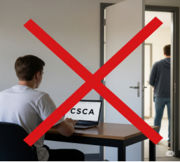 Nhằm vượt qua giới hạn về địa lý và tạo điều kiện thuận tiện hơn cho thí sinh, CSCA chính thức triển khai hình thức thi trực tuyến tại nhà. Thí sinh chỉ cần sử dụng hai thiết bị gồm: