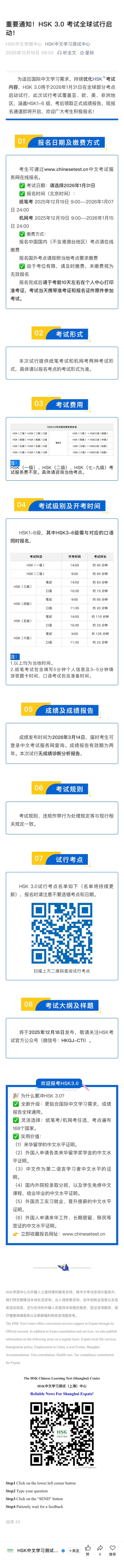 Dự kiến công bố vào ngày 18 tháng 12 năm 2025, vui lòng chú ý theo dõi tài khoản chính thức của HSK (WeChat ID: HKGJ-CTI).