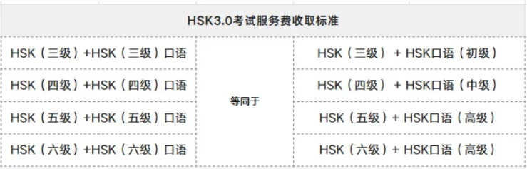 Biểu phí dịch vụ thi HSK3.0 được tiêu chuẩn hóa như sau: