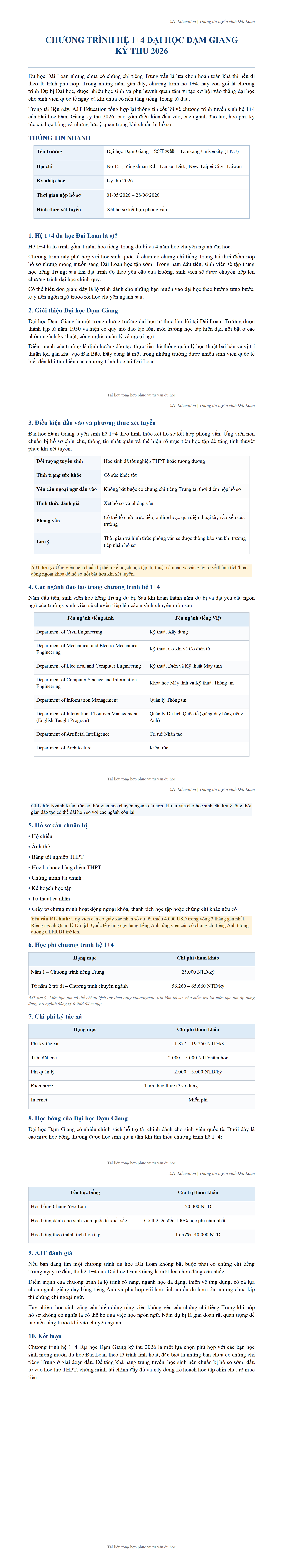 Chương trình 1+4 Đại học Đạm Giang | AJT EDUCATION