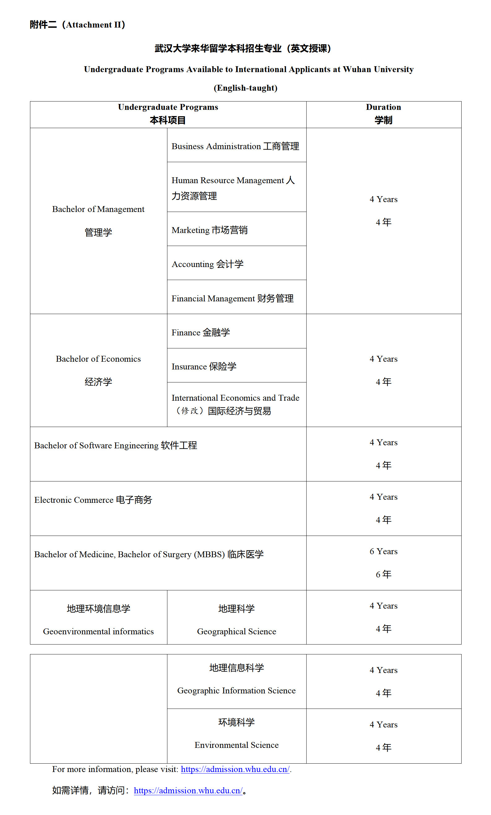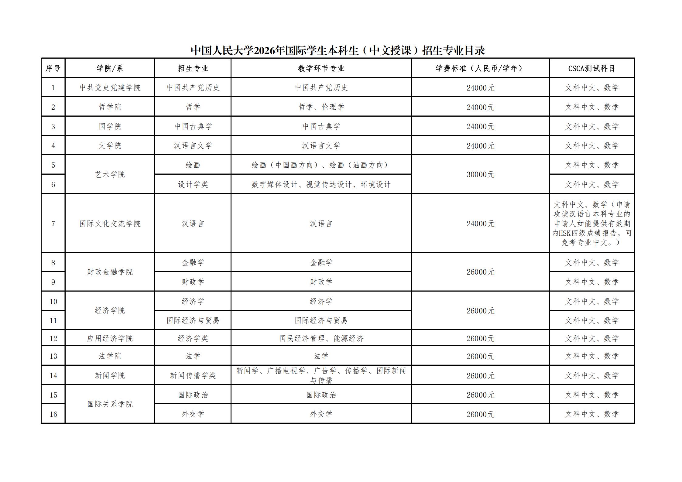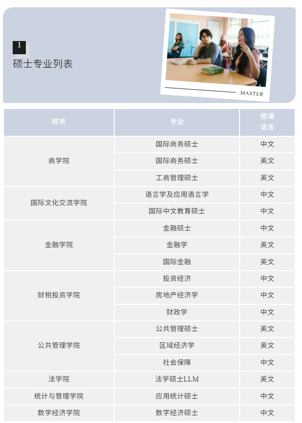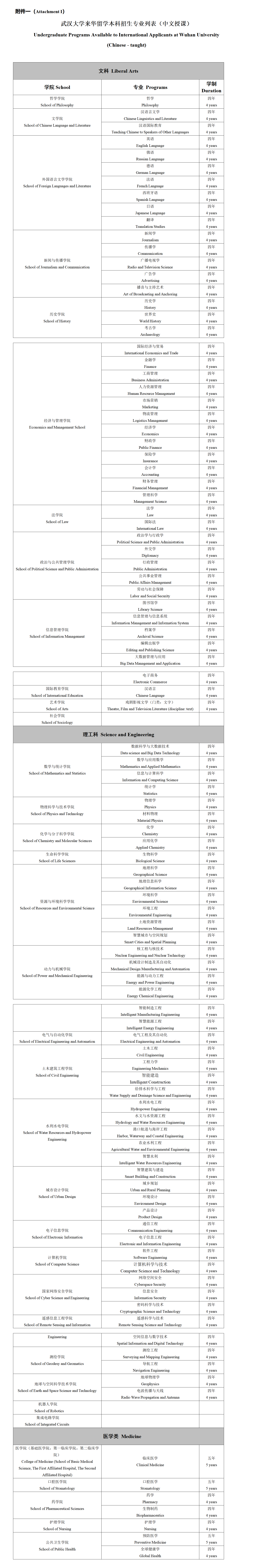 Toán học và Toán ứng dụng, Khoa học thông tin và Tính toán, Khoa học thông tin lượng tử, Vật lý ứng dụng, Khoa học và Kỹ thuật thông tin quang điện, Kỹ thuật hóa học, Chemistry, Vật liệu và Kỹ thuật polyme, Khoa học sinh học, Khoa học và Kỹ thuật thực phẩm, Kỹ thuật sinh học, Dược sinh học, Khoa học môi trường, Khoa học thông tin địa lý, Kỹ thuật trắc địa, Sinh thái học, Kỹ thuật thông tin điện tử, Khoa học và Công nghệ điện tử, Kỹ thuật truyền thông, Thiết kế, Chế tạo máy và Tự động hóa, Tự động hóa, Kỹ thuật điện và Tự động hóa, Công nghệ và Thiết bị đo lường - điều khiển, Khoa học và Công nghệ máy tính, Kỹ thuật phần mềm, An toàn thông tin, Kinh tế học, Kinh tế và Thương mại quốc tế, Tài chính, Ngân hàng, Kinh tế số, Quản lý logistics, Quản lý du lịch, Quản trị nhân lực, Kế toán, Thương mại điện tử, Marketing, Quản trị kinh doanh, Quản trị hành chính, Quản lý thông tin và Hệ thống thông tin, Khoa học thư viện, Lưu trữ học, Sở hữu trí tuệ, Luật học, Xã hội học, Khoa học chính trị và Hành chính, Công tác xã hội, Tiếng Anh, Tiếng Nga, Tiếng Nhật, Tiếng Đức, Tiếng Tây Ban Nha, Ngôn ngữ và Văn học Trung Quốc, Giảng dạy tiếng Hán quốc tế, Triết học, Tâm lý học ứng dụng, Lịch sử, Khảo cổ học, Phát thanh - Truyền hình, Báo chí, Internet và Truyền thông mới, Biên tập và Xuất bản, Khoa học và Công nghệ trí tuệ, Ngân hàng Internet, An ninh không gian mạng, Kỹ thuật mạng, Kỹ thuật Internet vạn vật (IoT), Vật lý vật liệu, Hóa học vật liệu, Vật liệu và Thiết bị năng lượng mới, Vật liệu chức năng, Khoa học và Công nghệ vi điện tử, Thiết kế mạch tích hợp và Hệ thống tích hợp, Công nghệ đóng gói điện tử, Khoa học dữ liệu và Công nghệ dữ liệu lớn, Thống kê học, Thống kê kinh tế, Quản lý và Ứng dụng dữ liệu lớn, Trí tuệ nhân tạo, Kỹ thuật robot.