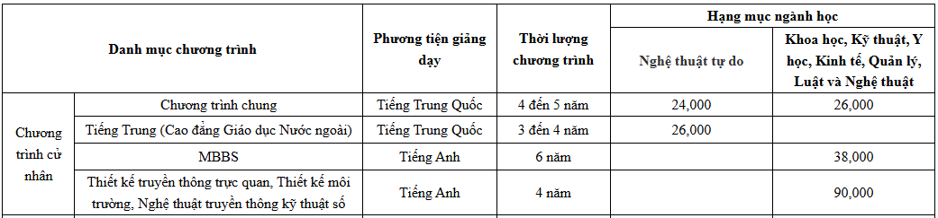 Chi phí tài liệu khóa học: 400-700 RMB mỗi năm học.